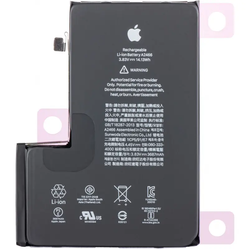 | Alte Detalii | Compatibil cu: A2342 / A2410 / A2412 / A2411 – Toate bateriile pentru iPhone sunt livrate cu număr de cicluri zero (Zero Cycle), echipate cu cip de monitorizare a parametrilor bateriei OEM TI Gas Gauge și cu banda adezivă de montaj a bateriei deja aplicată. |