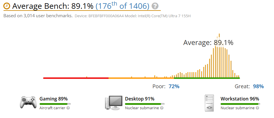 Procesorul integrat pe acest model, Intel® Core™ Ultra 7 155H, face parte din noua generație de procesoare cu arhitectură hibridă Meteor Lake, care include atât nuclee de performanță, cât și nuclee de eficiență. Este gândit nu doar pentru gaming, ci și pentru sarcini de creație, multitasking și chiar procesare AI. În timpul testelor noastre, am rulat aplicații precum Adobe Premiere Pro, Photoshop și Blender – iar procesorul s-a descurcat excelent, fără blocaje sau încetiniri, chiar și în proiecte mai complexe. În plus, temperatura procesorului s-a menținut într-un interval decent, cu răcirea gestionând bine și sesiunile intense.