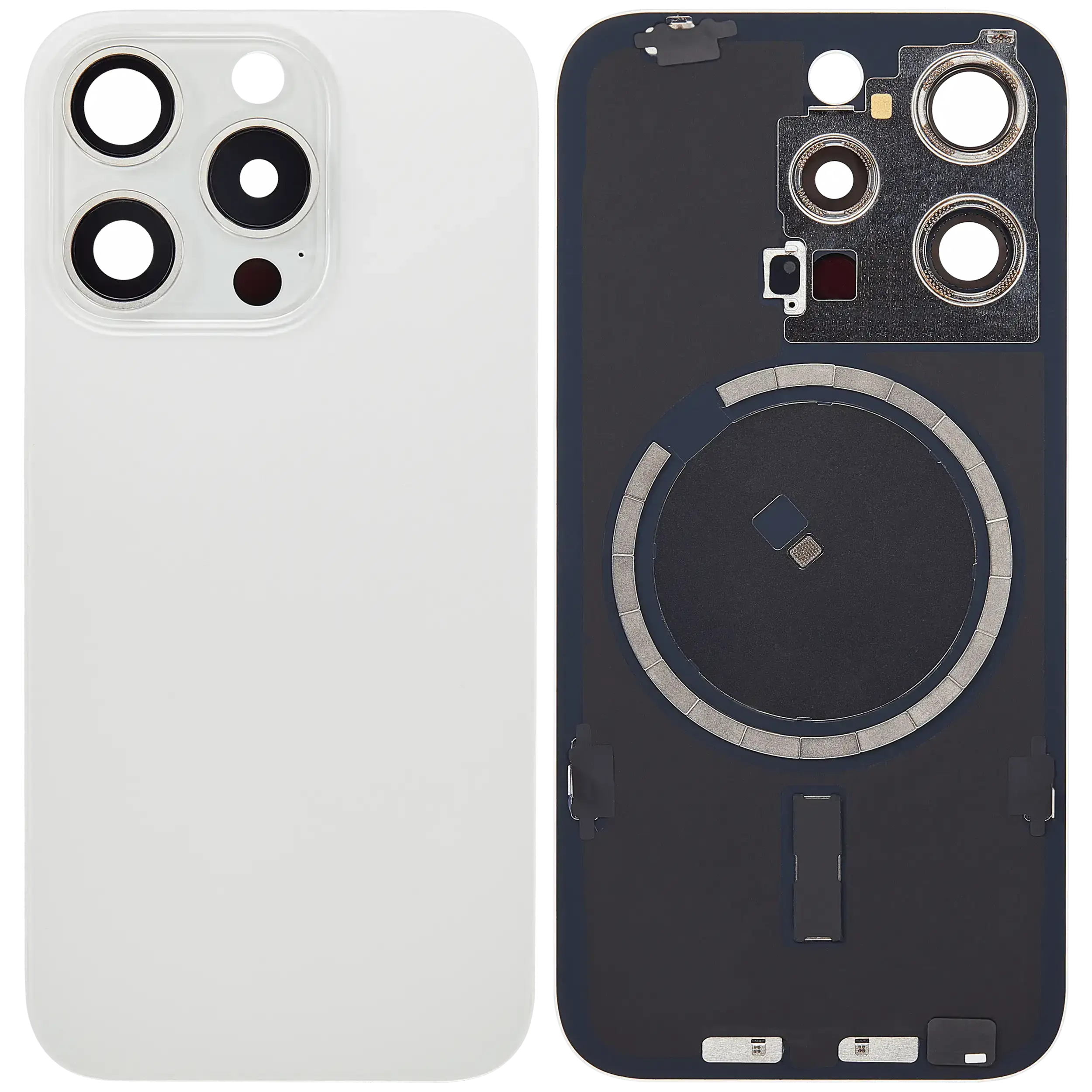 • Se recomanda verificarea compatibilitatii piesei Capac Spate Sticla iPhone 15 Pro Aftermarket (No Logo) (White Titanium) inainte de montajul definitiv.