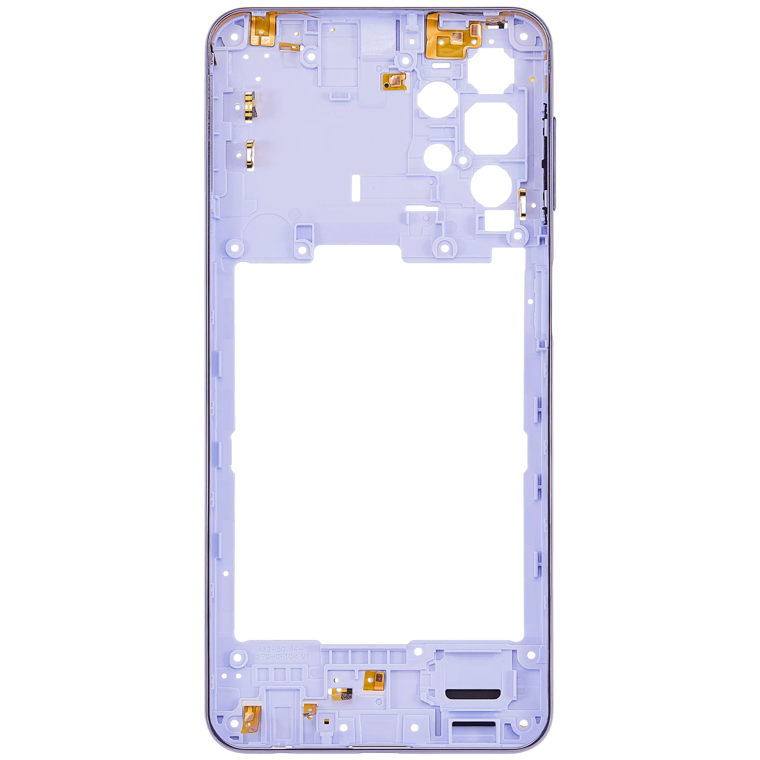Carcasa Mijloc Samsung Galaxy A32 5G (A326) AMPlus (Awesome Violet) poate fi utilizata pentru inlocuirea componentelor externe deteriorate sau uzate, contribuind la restaurarea structurii dispozitivului si la mentinerea fixarii corecte a componentelor interne.