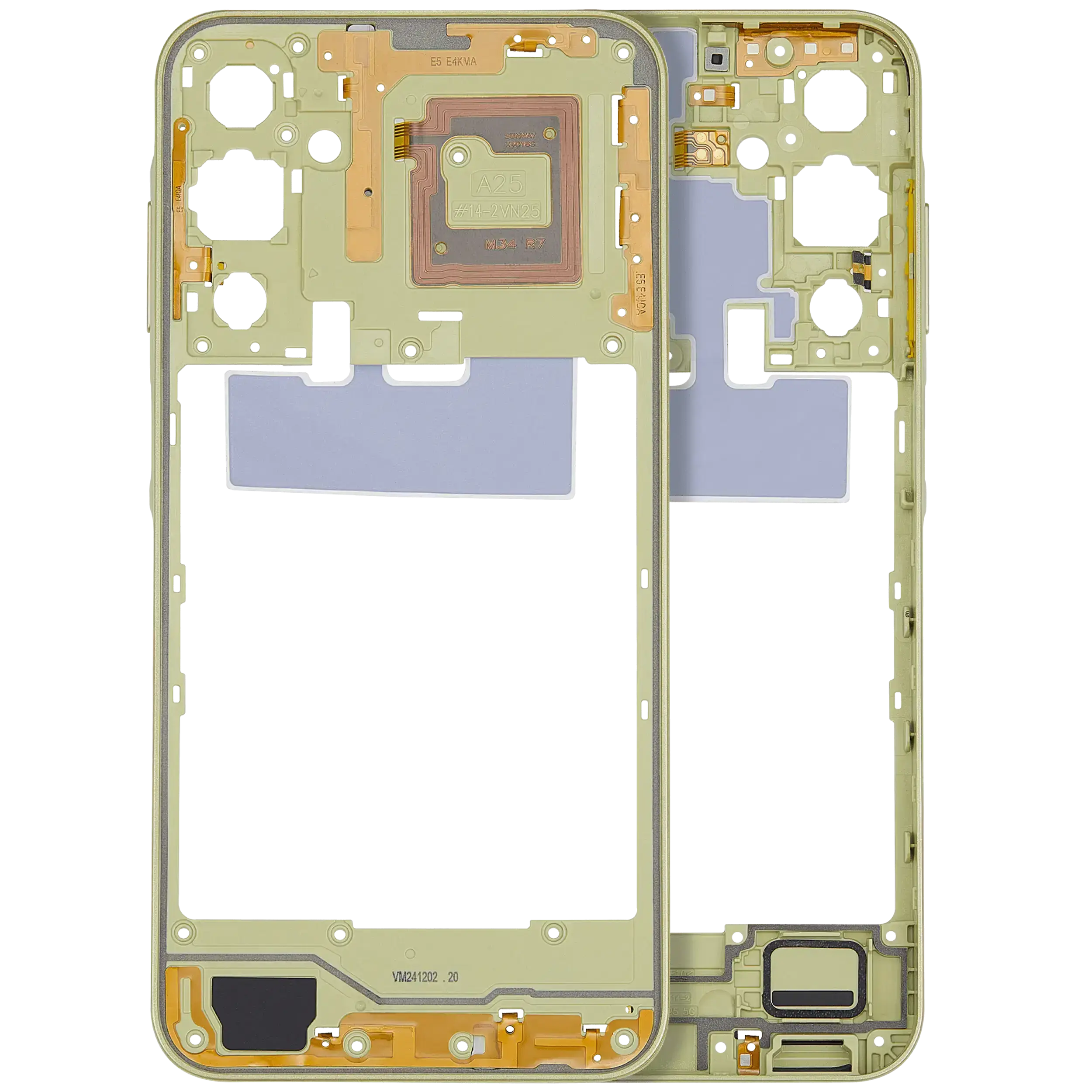Carcasa Mijloc Samsung Galaxy A25 5G (Personality Yellow) poate fi utilizata pentru inlocuirea componentelor externe deteriorate sau uzate, contribuind la restaurarea structurii dispozitivului si la mentinerea fixarii corecte a componentelor interne.