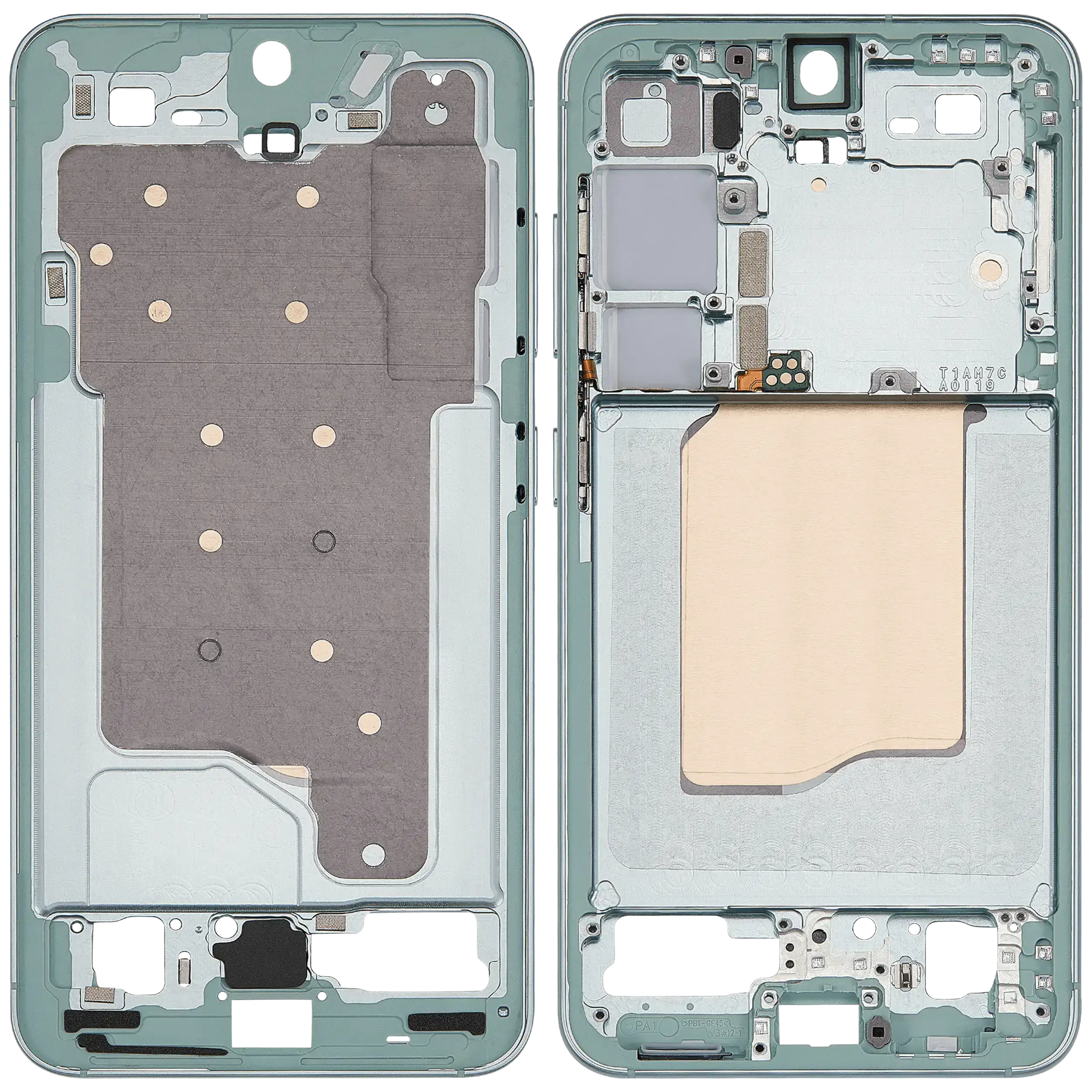 Carcasa Mijloc Samsung Galaxy S25 5G (Mint) poate fi utilizata pentru inlocuirea componentelor externe deteriorate sau uzate, contribuind la restaurarea structurii dispozitivului si la mentinerea fixarii corecte a componentelor interne.