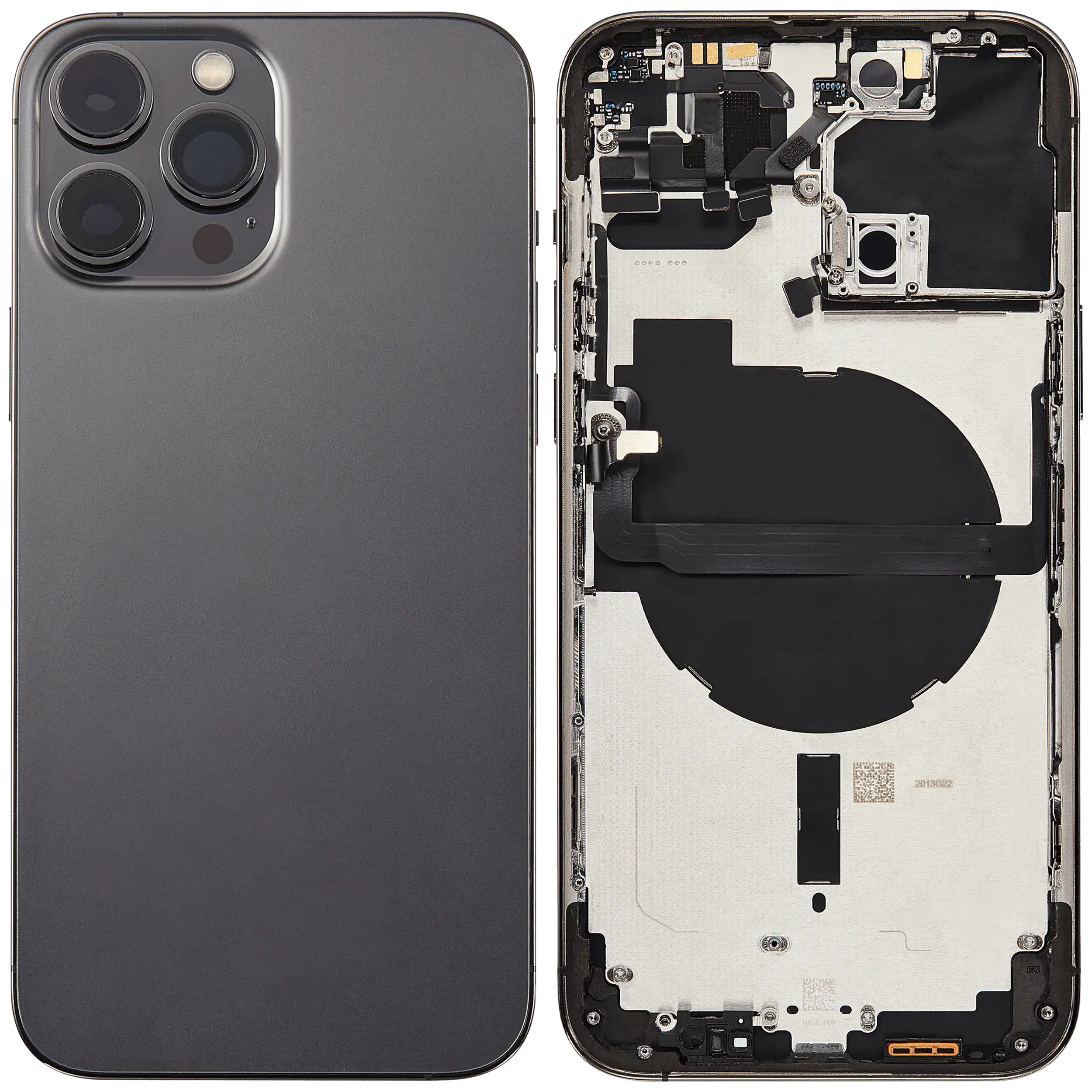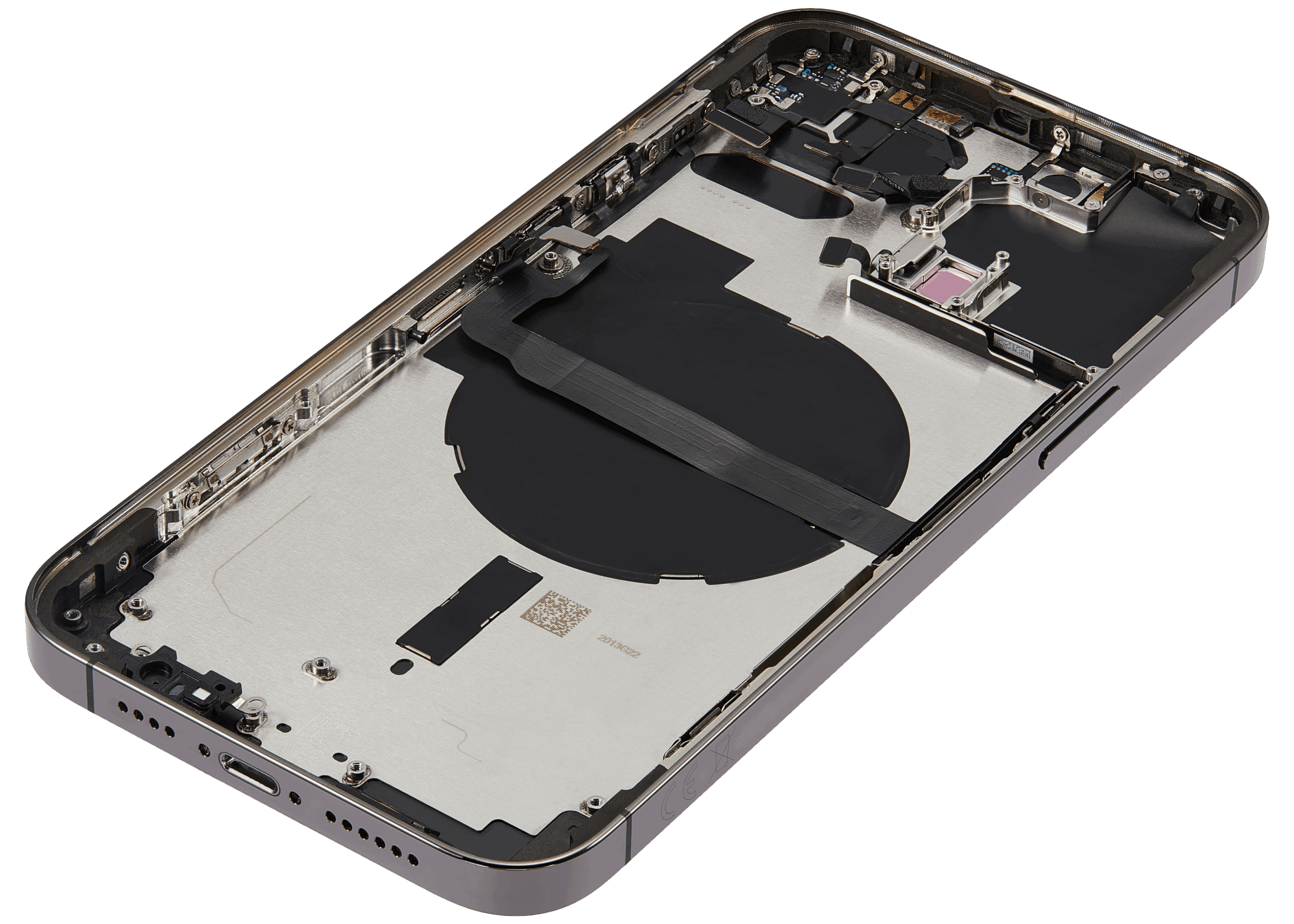 | Alte Detalii | Carcasa Spate iPhone 13 Pro Max cu componente instalate: Power Flex, Volume Flex, NFC Flex and Sim tray. Compatibil cu: A2643 / A2484 / A2641 / A2644 / A2645 Culoarea acestei carcase este Graphite |