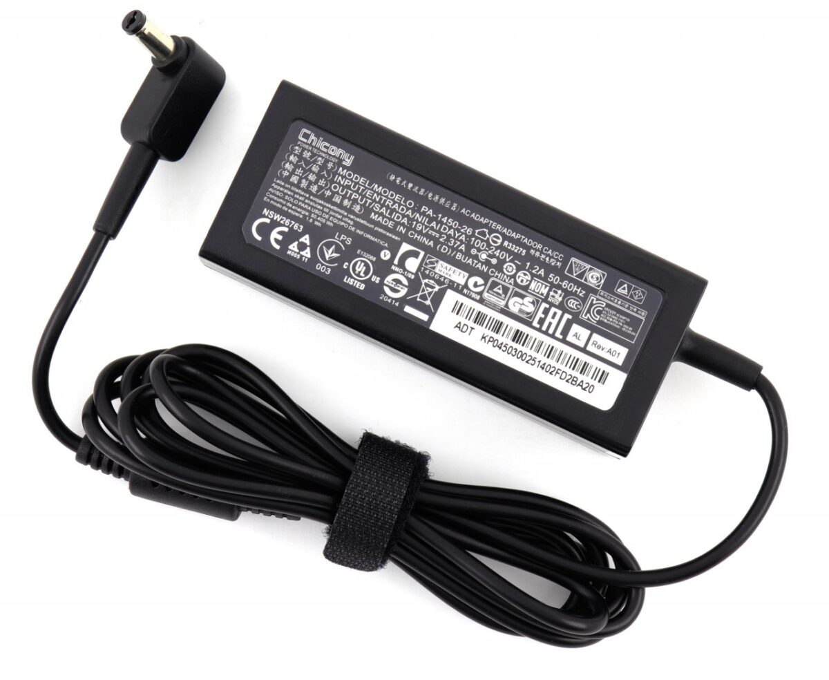 Incarcator Laptop Acer PA-1450-26 45W 19V 2.37A 5.5×1.7mm Chicony ORIGINAL respectă toate standardele internaționale de calitate și siguranță Safety MARK, RoHS, fiind testat pentru compatibilitate și fiabilitate pe dispozitivele . Include circuite inteligente de protecție pentru a prelungi durata de viață a bateriei și a încărcătorului.